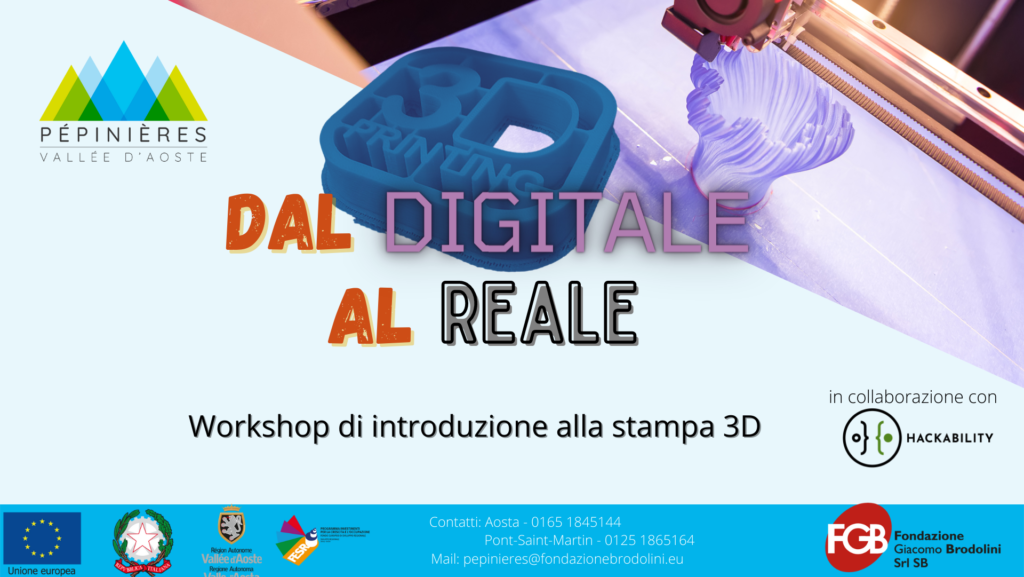 Le Pépinières sono liete di presentarvi “Dal digitale al reale – Workshop di introduzione alla stampa 3D”! In collaborazione con Hackability, il workshop è diviso in 3 appuntamenti, dalle 17.00 alle 19.00, presso la sede di Pont-Saint-Martin, in Via Carlo Viola 78. Se in possesso di un laptop i3 o superiore, è possibile iscriversi al […]